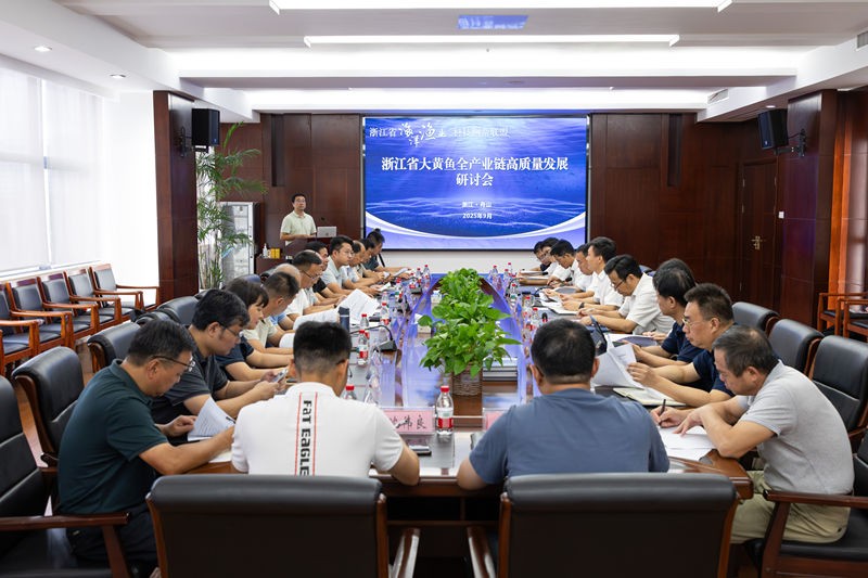 9月19日,浙江省大黄鱼全产业链高质量发展研讨会,在浙江省海洋水产研究所成功举行。本次会议以“科技赋能 绿色转型 品牌升级——打造大黄鱼全产业链高质量发展新标杆”为主题。浙江省渔业科技创新联盟理事长、浙江海洋大学党委书记严小军,浙江省渔业科技创新联盟秘书长、浙江省海洋水产研究所党委书记、所长王迎宾,浙江省渔业科技创新联盟副秘书长、浙江省海洋水产研究所副所长柴学军出席会议,大黄鱼养殖、苗种培育、加工销售等全产业链企业代表,科研院所、技术推广单位的负责人等30余位人员参会,共同为大黄鱼产业高质量发展建言献策。